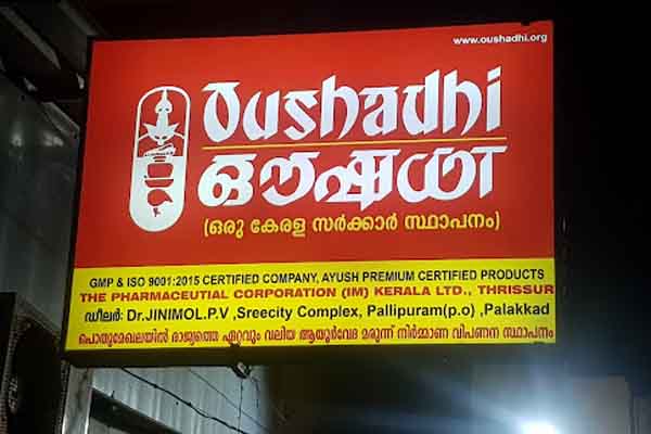 OUSHADHI - Sree City Complex, Pallippuram P.O., Opp Kanikkamatha School, Palakkad PH : 8714406674